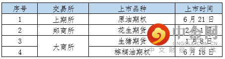 2021年,中国期货市场全年一共上市了4个品种(表5),包括2个期货品种、2个期权品种。其中,上期所下属上海国际能源交易中心上市了原油期权;郑商所上市了花生期货;大商所上市了生猪期货和棕榈油期权。