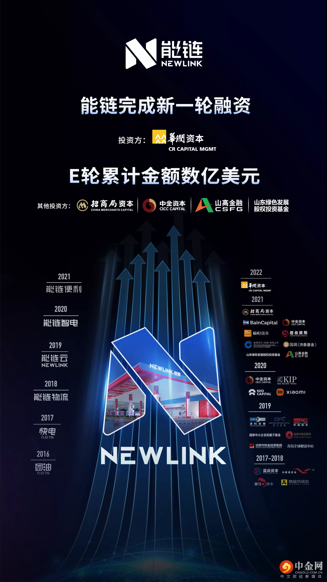 2022年1月27日,能链NewLink正式宣布获得华润资本投资,加上此前招商局资本、中金资本、山东高速、国际绿色基金山东绿色发展股权投资基金的投资,能链已累计完成数亿美元的E轮融资。招银国际担任能链NewLink本轮融资的财务顾问。