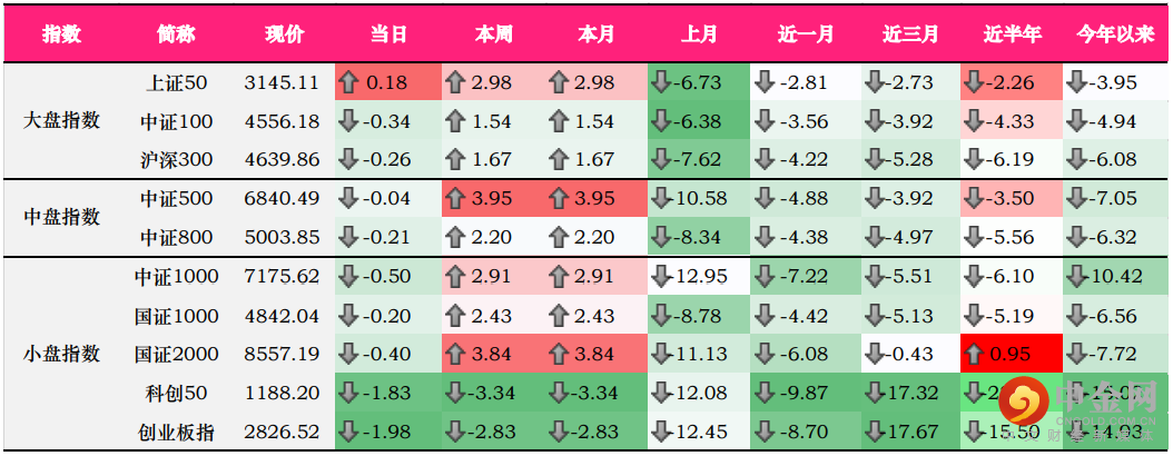 大、中、小盘指数方面,除上证50收涨外,其余各指数均出现不同程度的下跌;其中,双创跌幅较大。受宁德时代一度跌近8%的拖累,创业板指跌幅达1.98%,药明康德再跌超7%,各高景气赛道,包括CRO、储能、光伏、锂电等新能源板块亦表现疲软;上证50、中证500相较稳定;其中上证50上涨0.18%,收于3145.11点。