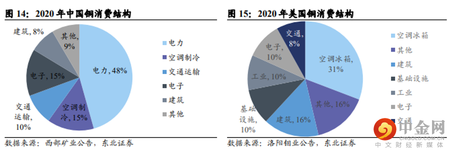 资金流动性充裕+供需依旧偏紧从商品属性和工业属性两方面驱动铜价维持高位震荡,2021年全年铜价上涨21%,最高涨幅为34%。近半年经济复苏及新能源带动铜需求增长,但铜供给方,南美因疫情和罢工等因素而停产,整体供需格局紧张维持铜价于高位震荡。中国为全球第一大铜消费国,占比持续增长,2020 年达到 59%,预计未来将维持在 55%以上。