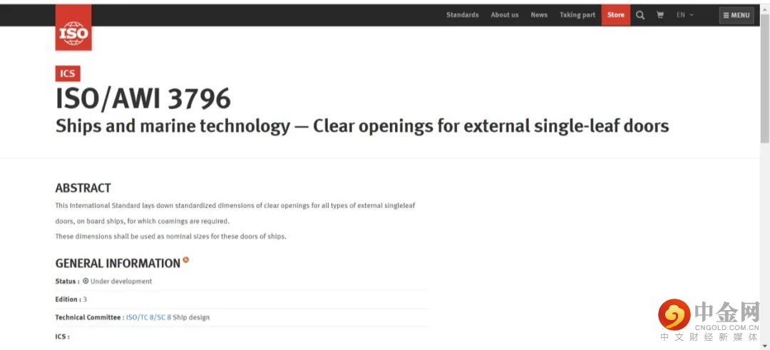 近日,由公司主导编制的国际标准ISO3796《船舶与海上技术 外部单扇门通孔》在ISO/TC8/SC8(国际标准化组织/船舶与海洋技术委员会/船舶设计分技术委员会)立项通过,标志着公司成立以来主导编制国际标准实现了“零”的突破。