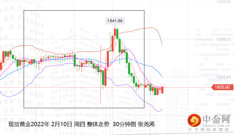 展望今日周五(2月11日):国际黄金开盘先行偏承压窄幅运行,美元指数早盘走强对其产压力,但隔夜道指大幅回落收跌,美债10年期收益率周四冲高回落留下长上影线,今日早盘走势偏弱,对其金价又产生支撑。同时市场在对于隔夜意外的数据回归冷静,走势继续在等待晚间行情加入。