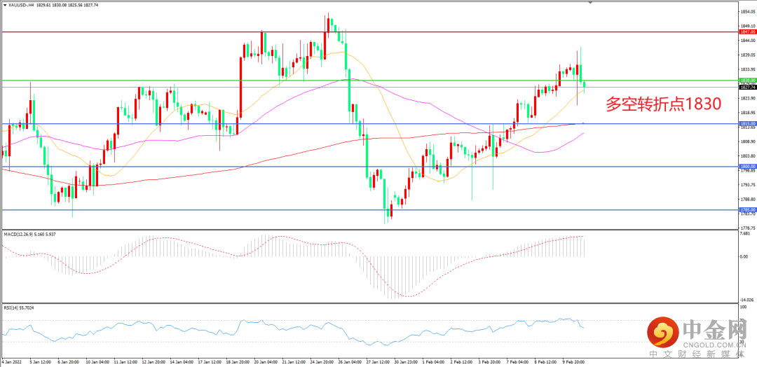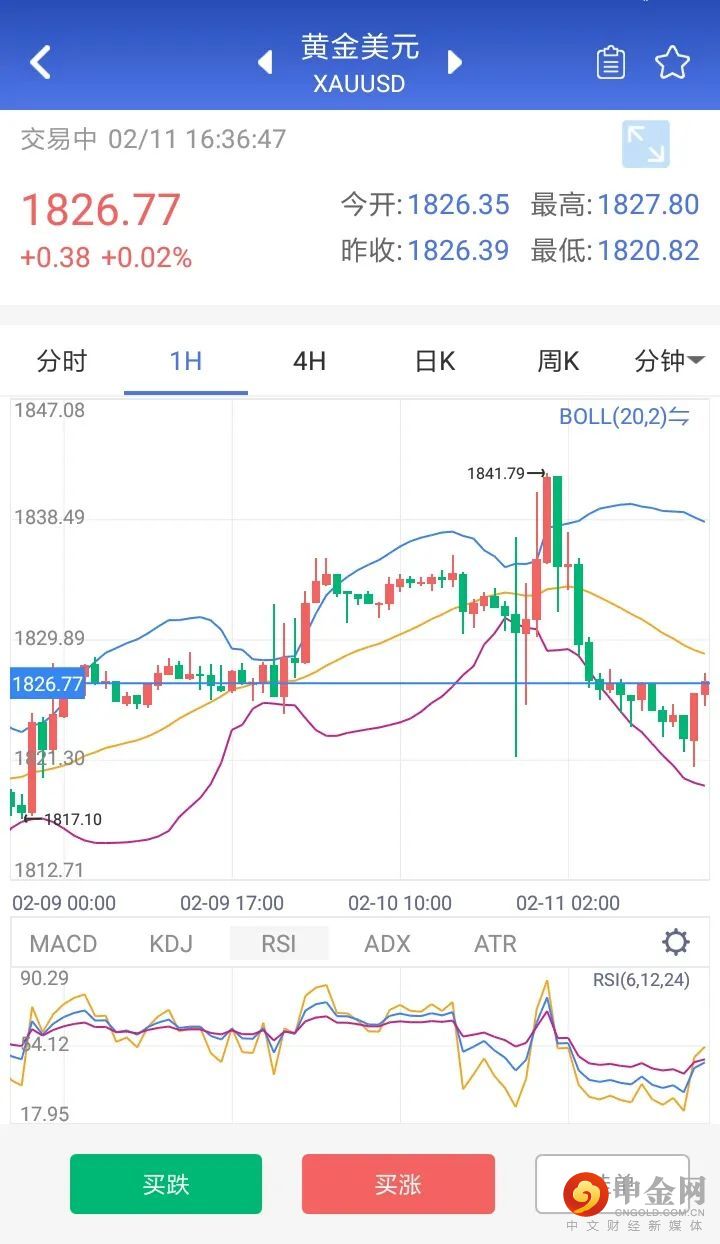 受美国1月通胀数据的影响,现货黄金昨日产生巨震,冲至1841美元后很快转跌。本交易日亚盘初,现货黄金仍然维持下跌趋势,在1825美元附近交投。