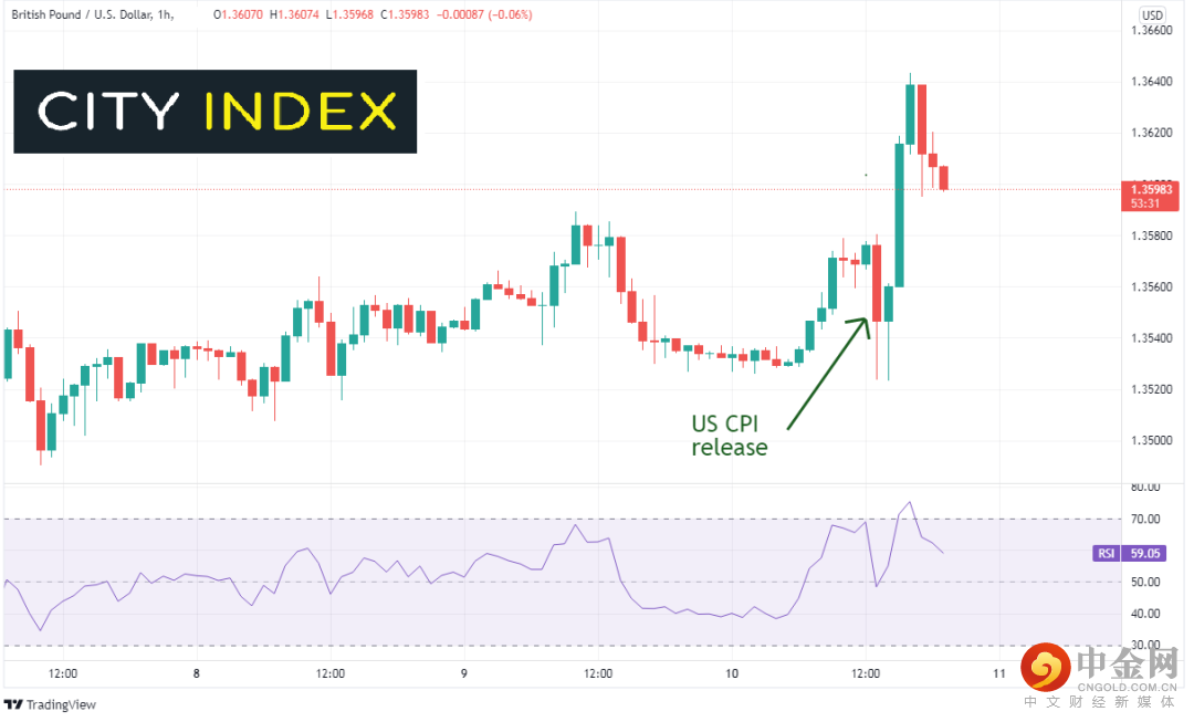 英镑/美元同样如此。该货币对先是在美国CPI数据发布时自1.3580高点下跌至1.3524,但1小时后上涨,至日图新高1.3644,比低点高出120点子。