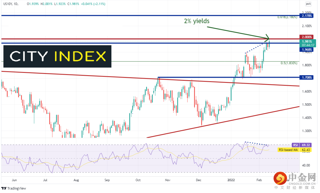 数据发布后,股市和债市闻讯下跌而美元应声上涨。美国10年期债券收益率升至2.00%的心理整数关口,创下2019年8月以来最高点。