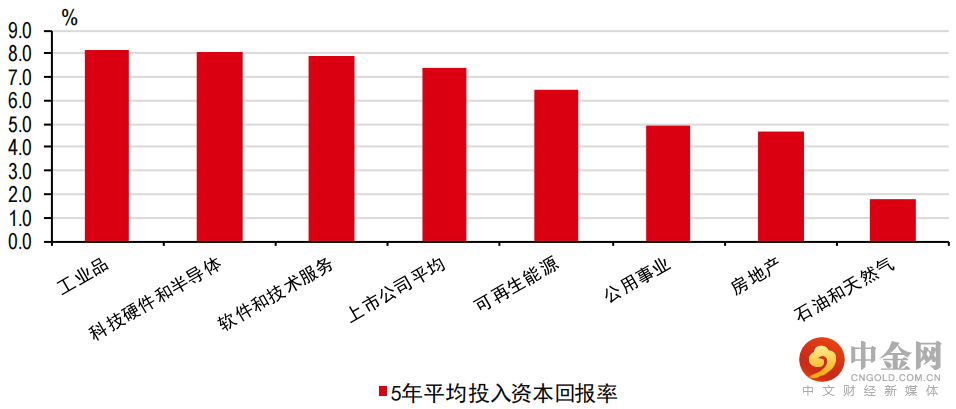 图3:中国上市公司的平均投入资本回报率(按行业)