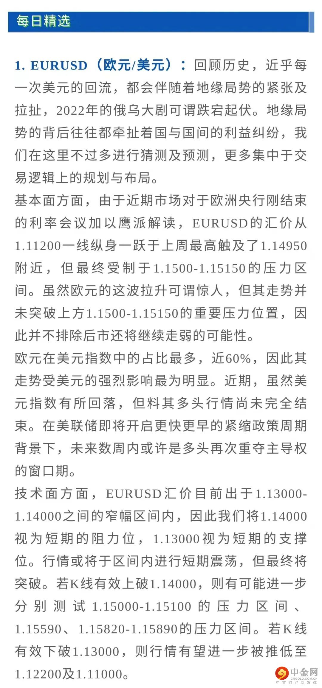 每日汇评:由于收益率下降和乌克兰危机,黄金价格暴涨。