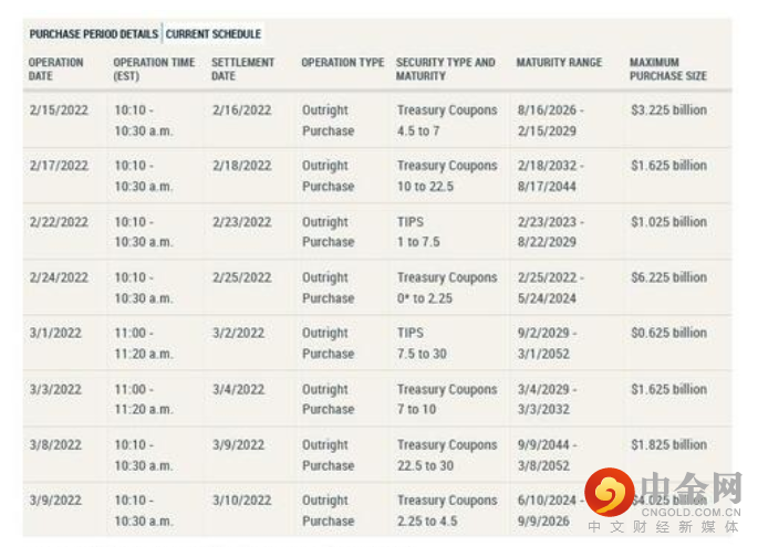 值得注意的是,纽约联储上周五发布的最终永久公开市场操作(POMO)时间表,似乎暂时浇灭了美联储在3月议息会议前宣布紧急加息的可能性。该时间表显示,美联储将在未来一个月的时间里,通过8次公开市场操作购买200亿美元的国债,最后一笔40亿美元的购买发生在3月9日。