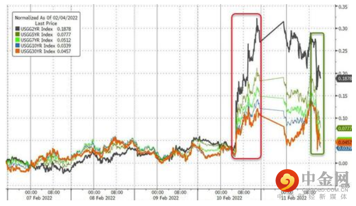 可以预见到的是,在本周前半段,全球金融市场尤其是风险偏好与厌恶情绪间转变,仍将在很大程度上受到俄乌局势发展的影响,尤其是美国政府所鼓吹的2月16日俄方“入侵日”到来前。不过,如果地缘事态的演变并未在短期内进一步升级,那么本周美债市场的重心,仍可能会重新转移回美联储加息预期本身。
