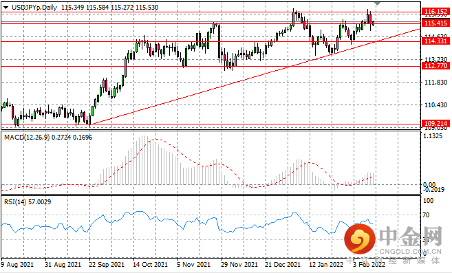 随着 116.15 作为关键阻力位走强,USDJPY再次回落。 115.41支撑位的买盘压力已经开始上升。 价格走势可能会再次朝着经常出现看涨反弹的上升趋势线移动。