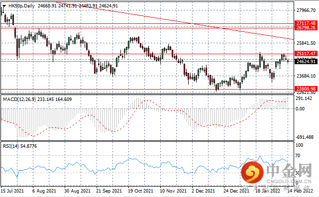 HK50 从 25,117 阻力线回落,再次巩固盘整通道。回调似乎是由于看涨势头减弱,而不是卖方的兴趣。该指数现在可能会继续在该通道中振荡。