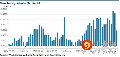 潍柴动力2021年三季报显示,前三季度公司实现营业收入1664.29亿元,同比增长12.92%,归母净利润79.00亿元,同比增长11.18%,其中单三季度实现营业收入400.41亿元,同比下滑24.3%,归母净利润14.69亿元,同比下滑39.45%。公司的第三季度业绩受行业景气度下行拖累,但仍好于重卡行业下滑幅度(-55.5%),在原材料涨价等不利影响下凸显公司经营韧性和竞争优势。