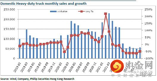3)2021年7月起,国内重卡排放标准由国五升至国六,国六重卡售价提升2-3万,导致用户在上半年抢购“国五”车型,国五车型库存高企有待消化,透支了下半年的重卡需求;