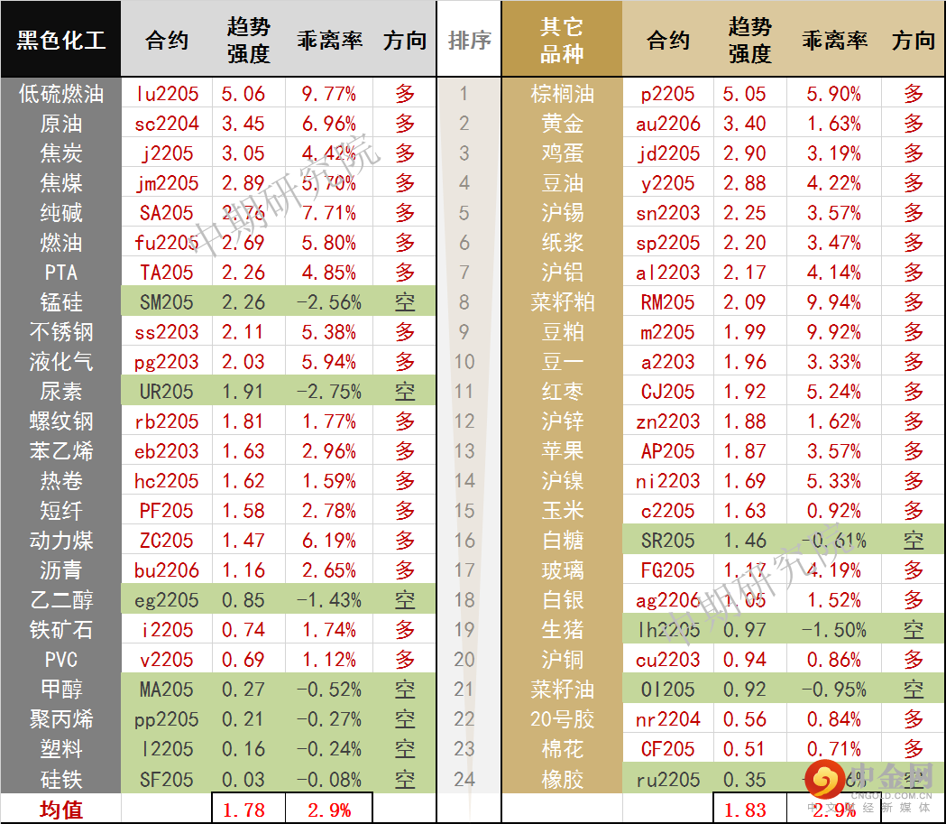 中期商品趋势榜 | 棕榈油持续上涨(0214)