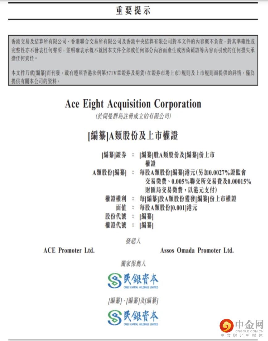 Ace Eight为一家新注册成立的开曼群岛豁免公司。其为一家特殊目的收购公司,成立目的为与一个或多个特殊目的收购公司并购目标进行特殊目的收购公司并购交易。在确定公司的特殊目的收购公司并购目标时,其拟专注于亚洲经营生物技术及TMT行业的公司,业务重心位于中国。然而,亦不排除在任何其他商业行业、部门或地理位置寻求收购或业务合并机会的可能性。