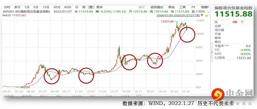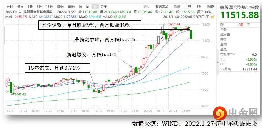 2022年开年WIND偏股混合基金指数连跌四周,月跌幅创下自2016年熔断以来的最大跌幅。