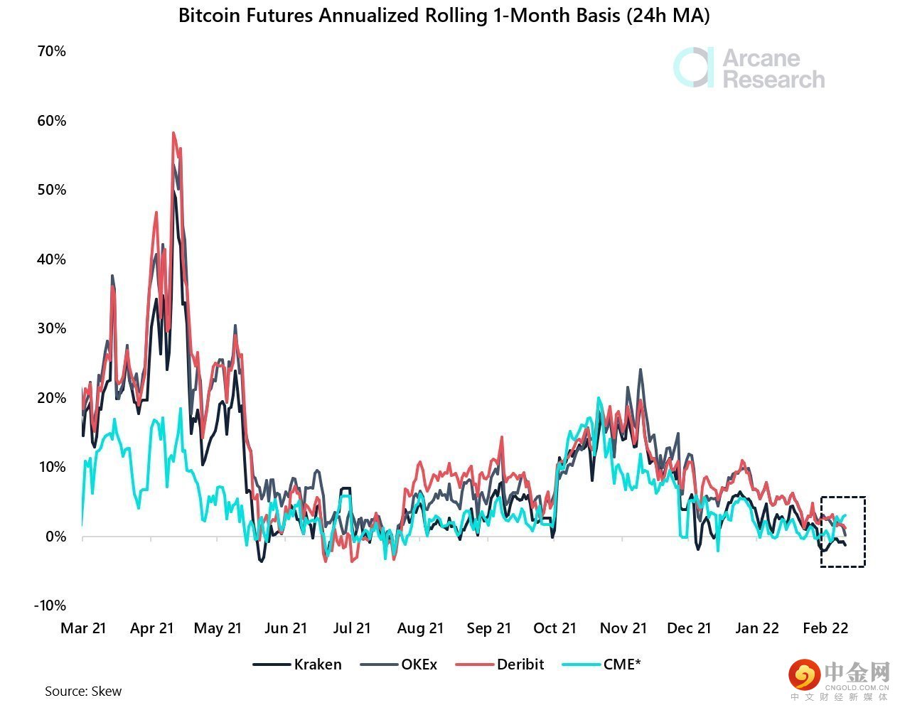 随着越来越多的传统金融公司给出积极的前景,机构对加密货币的兴趣继续增加。它甚至超过了散户投资者,因为 CME 上市的 BTC 期货的基差出现了上涨,这意味着远期价格走高,而零售平台上上市的 BTC 期货的基差下降。这表明目前机构投资者比散户投资者更看好,这通常是一个好兆头。