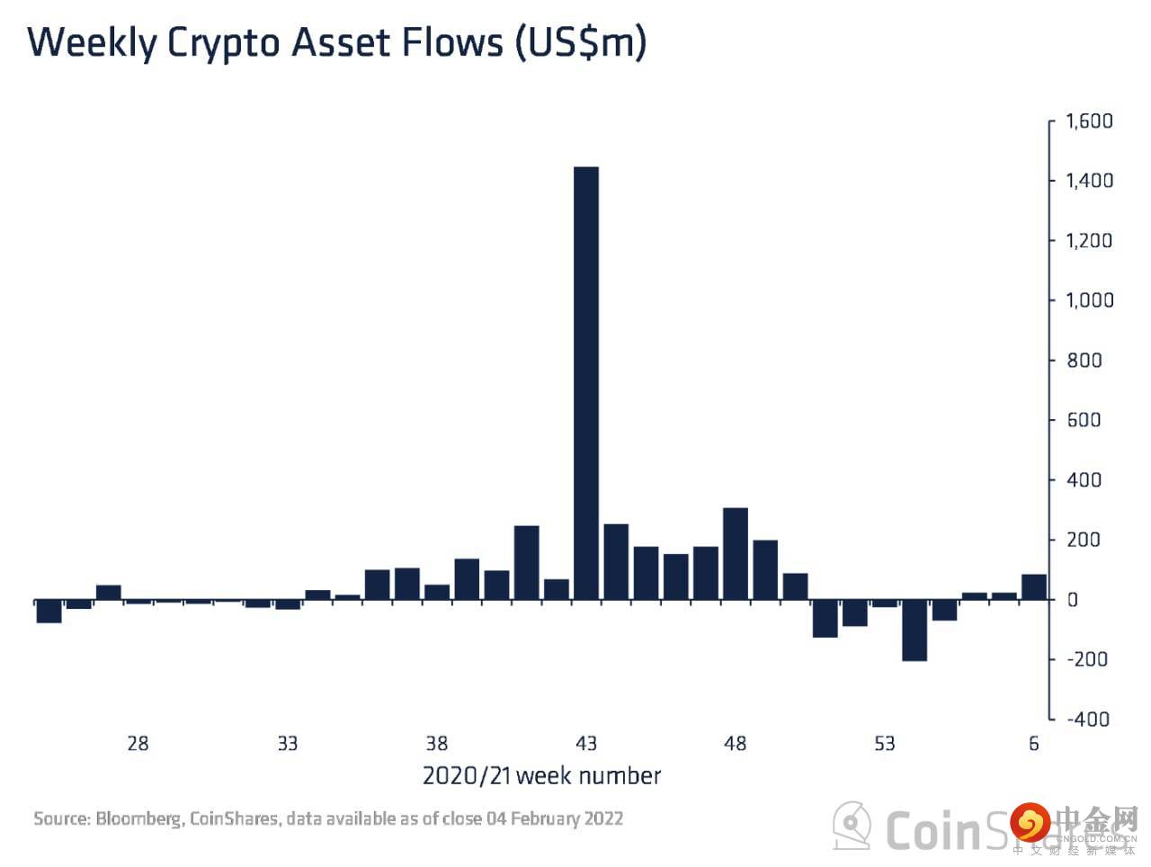 除 CME 参与者外,其他加密货币基金也出现了第三周的资金流入,总计 8500 万美元。BTC 继续以 7100 万美元的资金流入领先,这是自 12 月初以来的最大流入量。一系列广泛的山寨币也出现了流入,例如:SOL、DOT 和 ADA,流入总额分别为 2.4 美元、220 万美元和 110 万美元。