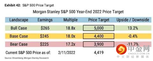 摩根士丹预计,在基准情景假设下,标普500的目标位是4400点,熊市情景为3900点,目前更建议超配高质量、防御性板块,四季度业绩不及预期的公司股价已被资本市场“重罚”。