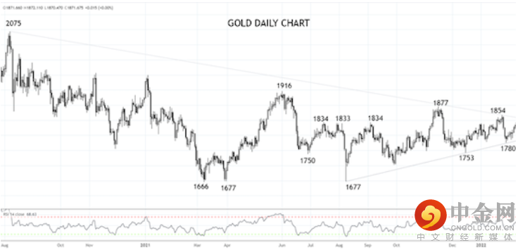嘉盛集团资深分析师西卡摩尔(Tony Sycamore)对记者表示,2021年多数时候,美国实际利率(名义债券收益率-通胀预期)的下行驱动非生息资产黄金走高。但从2021年11月下旬开始,事态出现变化,尽管美联储鹰派立场促使真实收益率和美元大幅飙高,但金价仍表现顽强,未在1800美元下方逗留太长时间。