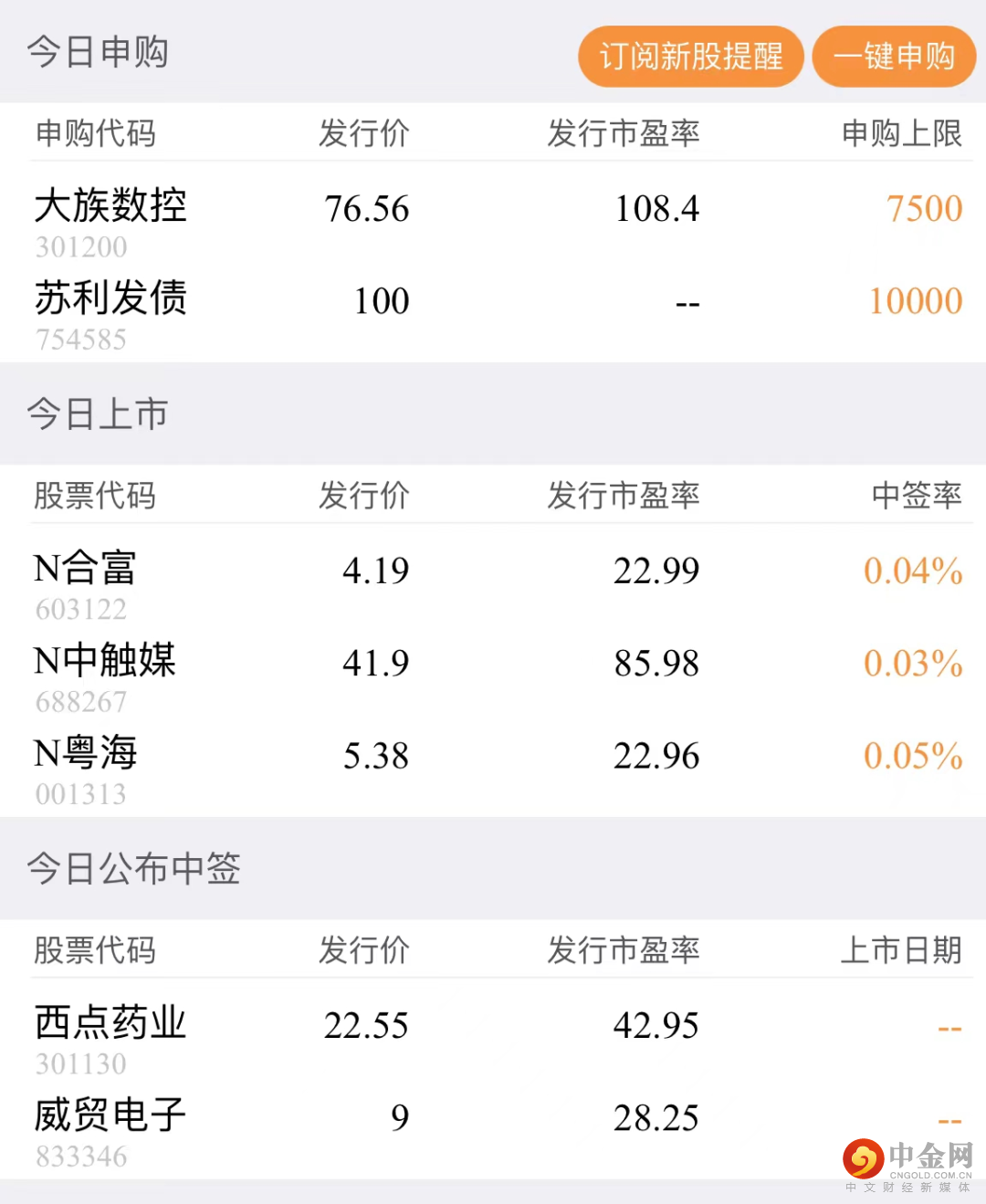 申购提醒:可设置提醒时间,在最合适的时段打新,提高中签几率。
