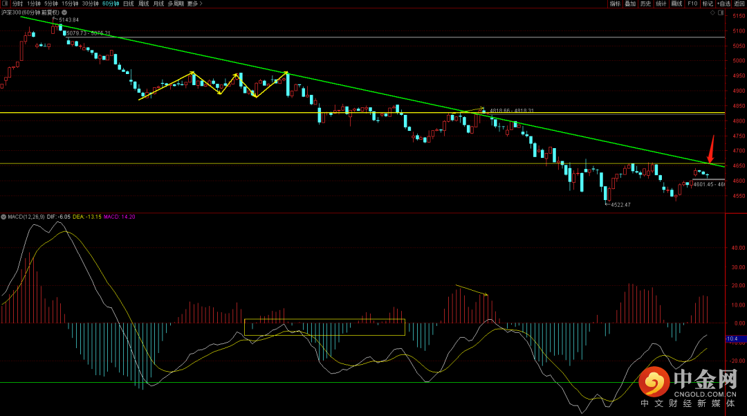沪深300依旧受制4650附近的压制,短期这个位置如果再继续上行需要注意短期回落的风险,在没有放大量突破下降趋势之前保持谨慎观望为主。