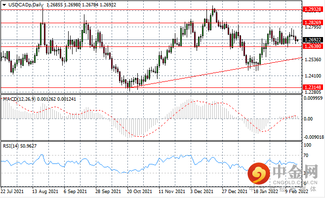 USDCAD在 1.263 和 1.282 价格水平之间盘整,价格走势继续在区间内收窄。可能会出现突破,但到目前为止,上行趋势线已经限制住下行趋势。动量指标在中性区域趋于平缓。
