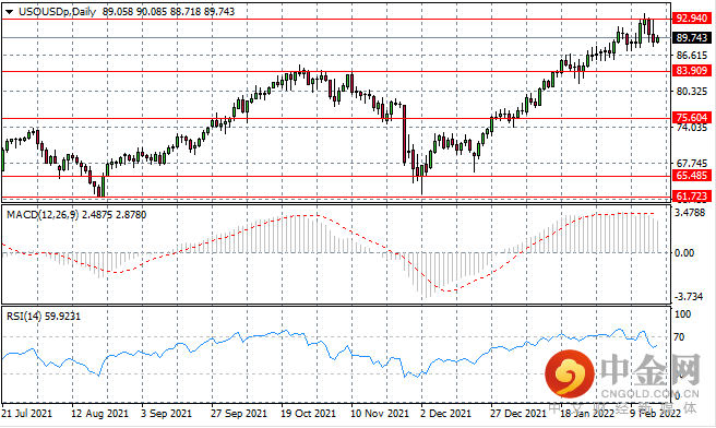 由于卖盘活动开始迅速上升,USOUSD已开始从 92.94 的价格上限回落。该商品一直在努力维持每桶 90 美元的区间,并可能在当前区间内震荡,直到基本面发生重大变化。