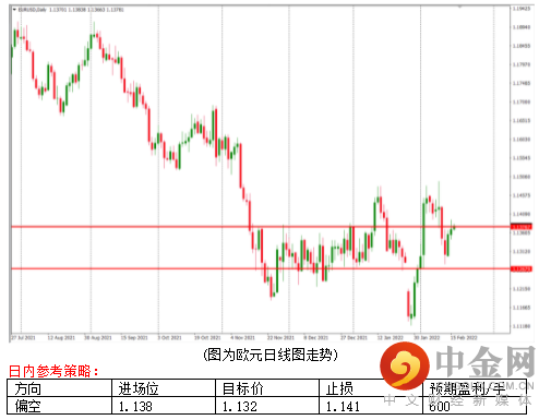 前一个交易日欧元上涨0.12%,收盘来到1.137。