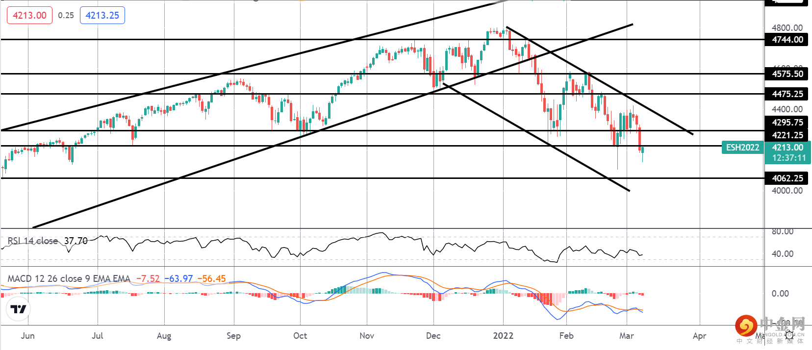 标准普尔的抛售似乎在 4221.25 区域的支撑位上停滞不前。 价格在支撑位继续保持的情况下对该水平进行了三个大测试。 鉴于动量研究的看涨背离,需要承认反转走高的可能性。 4475.25 将是多头突破的关键水平,下行,如果我们走低,4062.25 是下一个支撑。