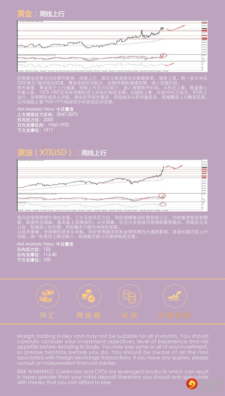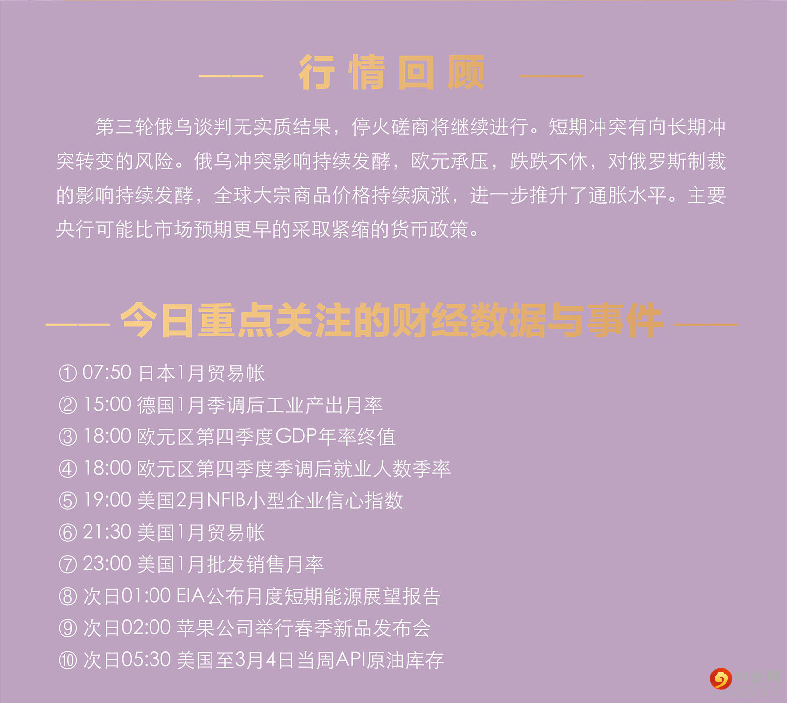 第三轮俄乌谈判无实质结果,停火磋商将继续进行。短期冲突有向长期冲突转变的风险。俄乌冲突影响持续发酵,欧元承压,跌跌不休,对俄罗斯制裁的影响持续发酵,全球大宗商品价格持续疯涨,进一步推升了通胀水平。主要央行可能比市场预期更早的采取紧缩的货币政策。