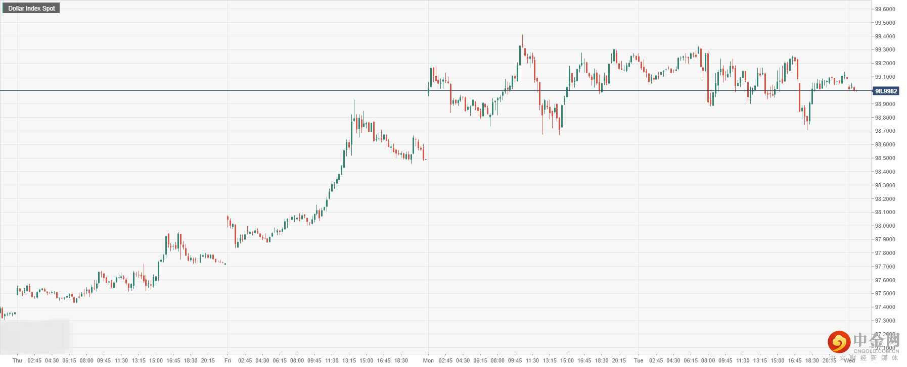 美元指数周二收盘上下起伏不定,今日开盘徘徊在98.99附近,由于美国经济数据普遍持平,使得美元波动维持在盘面水平。