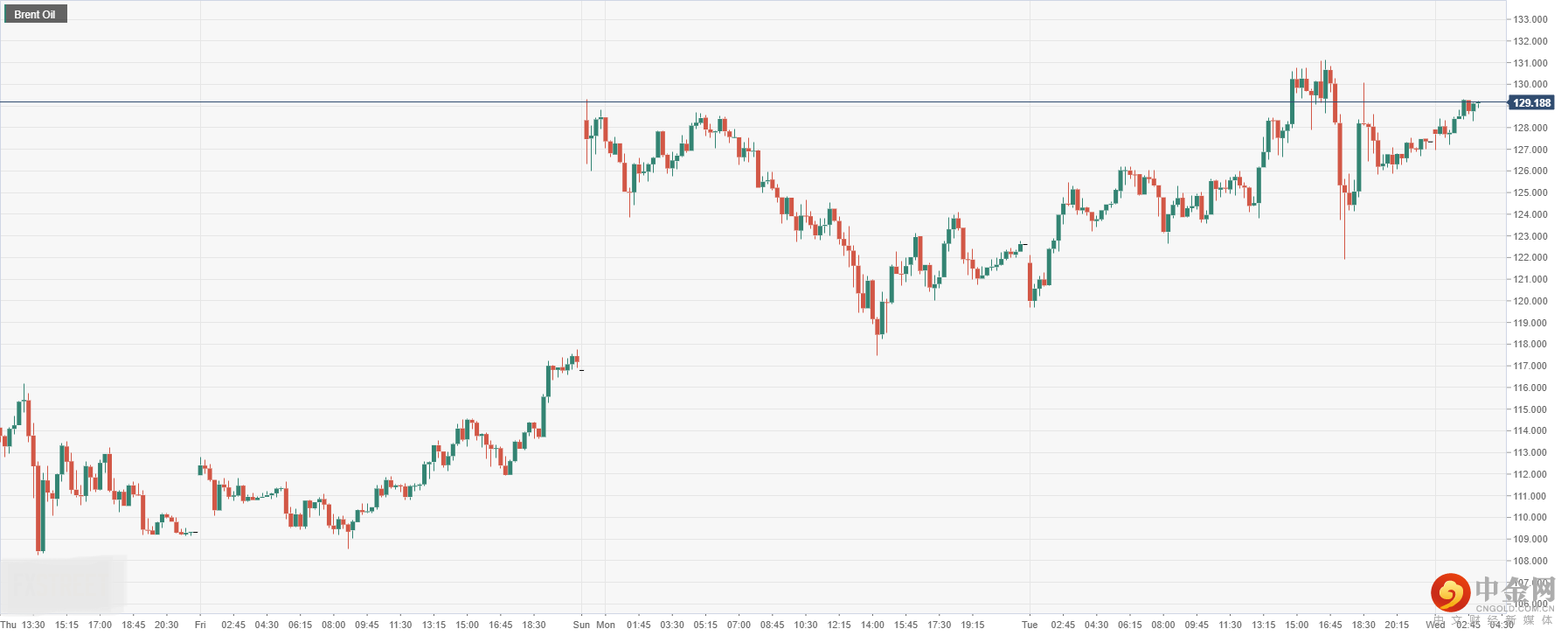 § 原油方面:布伦特原油上升至129.18。
