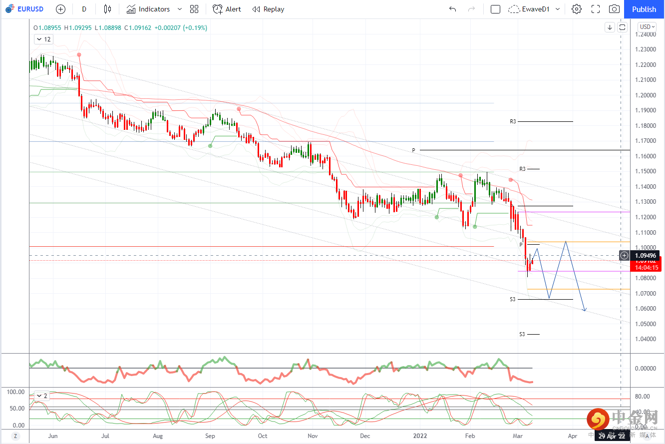 2020 年低点 1.0636 和 2017 年低点 1.0340 是近期技术突破的目标