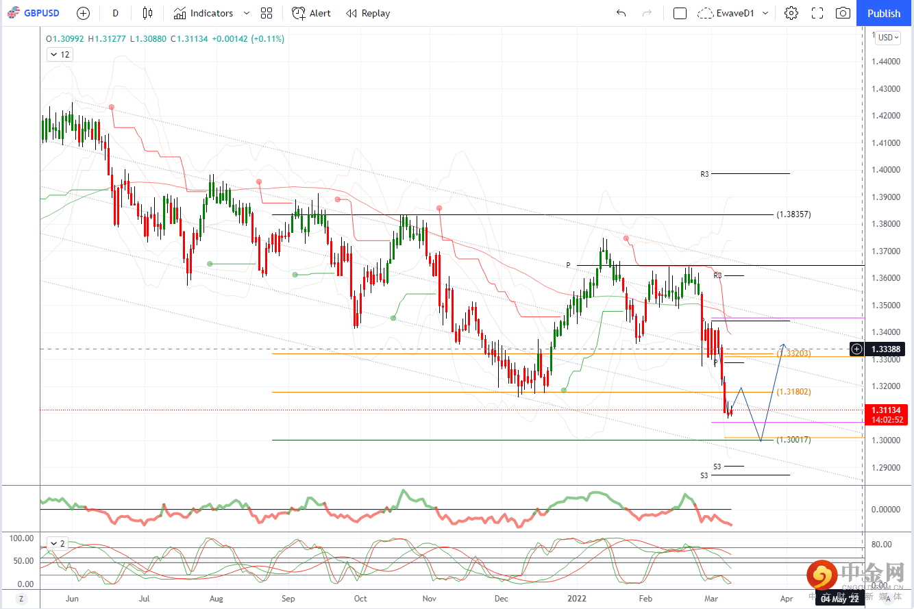 收于下跌的1.3282 10日均线上方将结束下行偏见