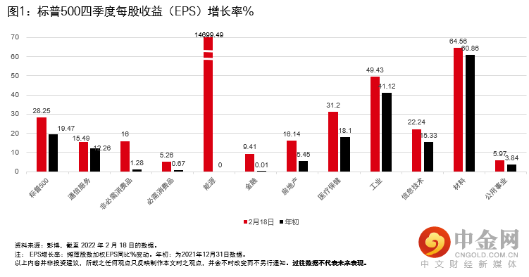 第四季度每股收益增长根据目前已公布的企业业绩,每股收益达到28.3%,而年初预测普遍预期低于20%,盈利增速上调超8%。能源行业的增长率仍高于所有行业,只有公用事业没有达到超出预期的目标。工业、材料和医疗保健盈利增长都大幅好于年初预期。受益于加息预期利好金融板块,金融业盈利增速也达9.41%,大幅超过年初0.01%的预期。