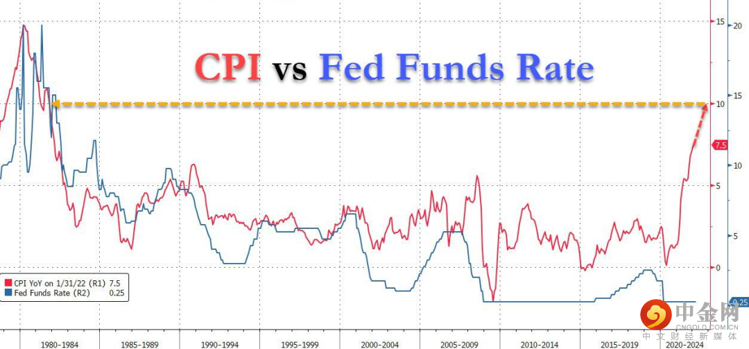 值得注意的是,上次美国通货膨胀率达到10%时,联邦基金利率高达15%。