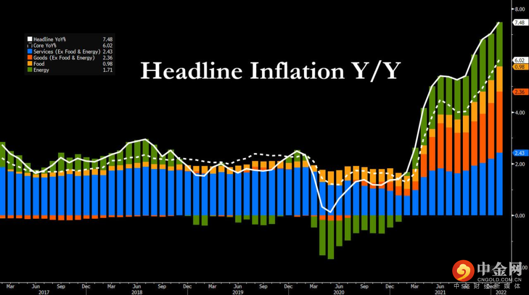 彭博经济学家们的预测更加悲观,现在他们预计“2月份CPI将同比增长8.0%,并在3月或4月达到9%附近的最高点”。但如果能源价格继续上涨,“CPI可能上涨10%以上”。