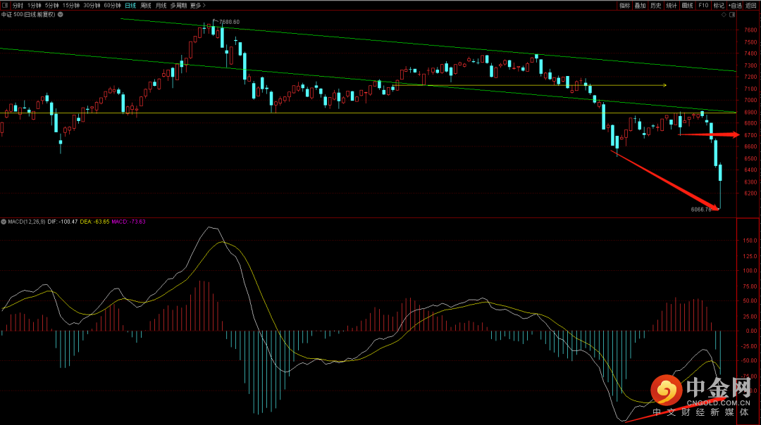 中证500表现稍微强势一点,短期看日线底背驰结构依旧还是有的,后续大概率还会有回升到6700附近。而从周期看大概率还会有三天的时间确立是否会有底分型出现。