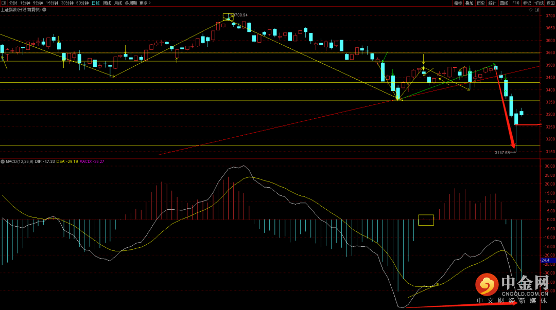 大盘跳空高开反弹到六十分钟的下跌五分位开始回落,短期大概率要去回补,关注后续走势是否会跌破3250,如果跌破则大概率还会去试探3147点的支撑,从周期看变盘点大概率会在三月中下旬。