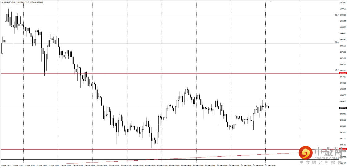 本周一黄金开盘上涨,因为鲍威尔表态通胀过高,投资者考虑到加息前景和地缘政治因素最终黄金多头占优,与此同时,乌克兰政府拒绝了俄罗斯交出南部港口城市马里乌波尔的要求,俄罗斯军队继续轰炸乌克兰城市。市场有观点认为:一方面地缘因素支撑黄金价格,另外一方面如果俄需要更强的资金流动,俄罗斯央行或团体将出售黄金,届时黄金价格可能出现暴跌的情况。