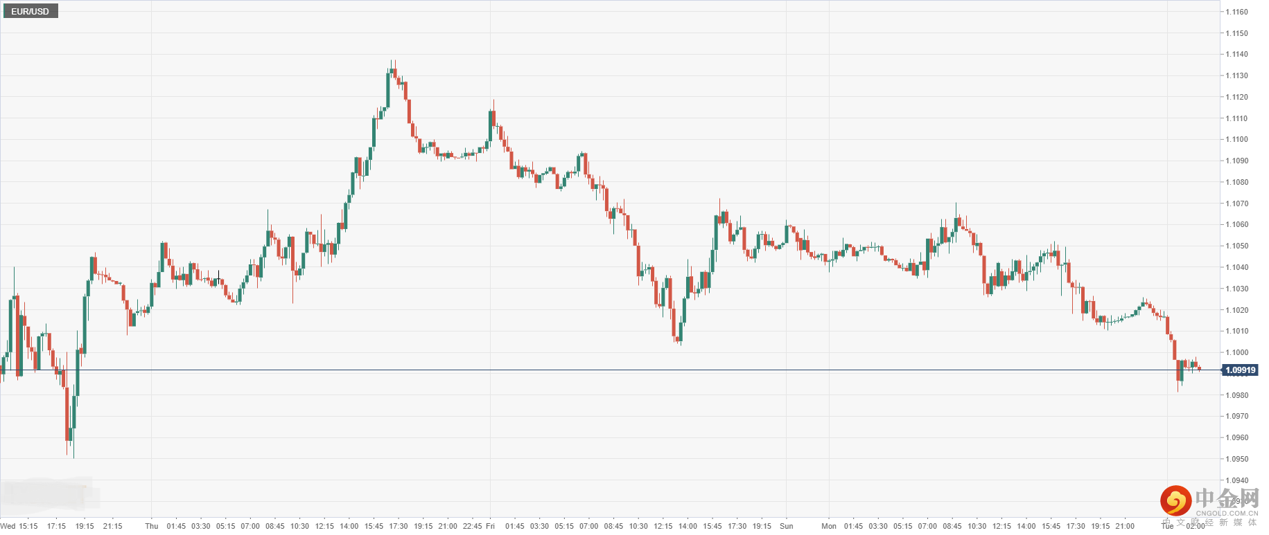 欧元兑美元周一收盘小幅震荡回落后,今日开盘跌0.28%至1.0991,因欧洲央行行长拉加德认为欧洲区受乌俄战争影响经济的层面大过于美国,对于货币政策行动须更加谨慎,欧元短线遭下行承压。