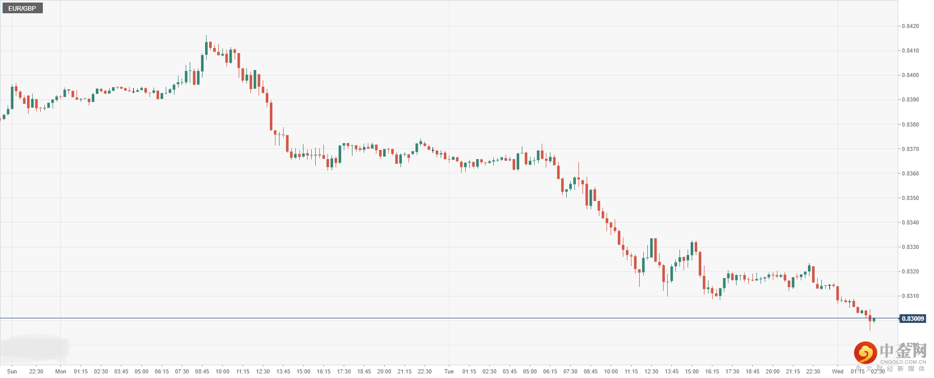 欧元兑英镑周二收盘小幅震荡回落后,今日开盘跌至0.8300,因英国工业订单数据增长,导致欧元下行承压,英镑则上行支撑。