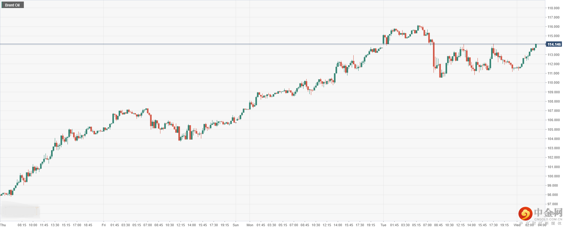 § 原油方面:布伦特原油下跌至114.14。