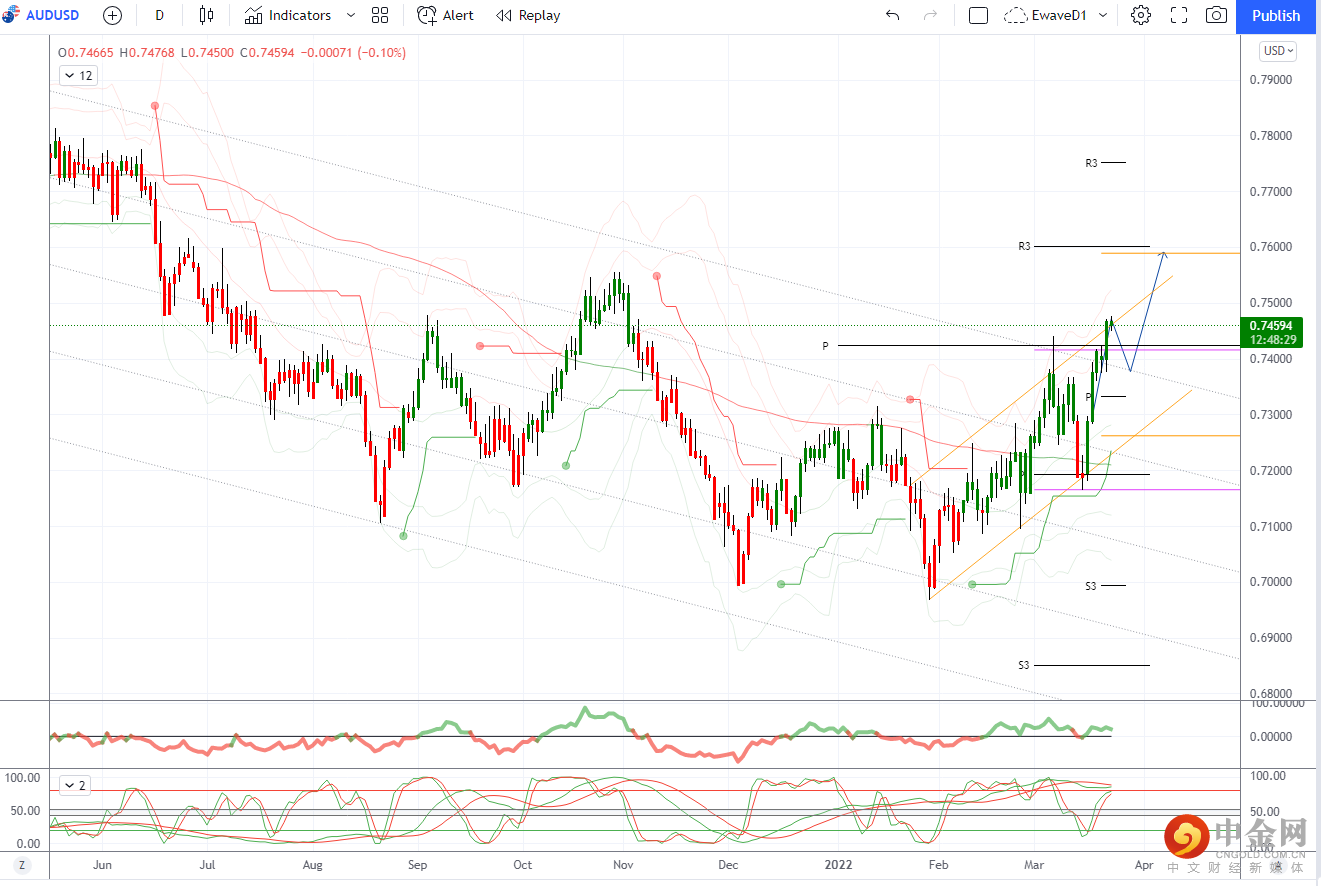 下午买盘帮助澳元/美元上涨至 0.7470