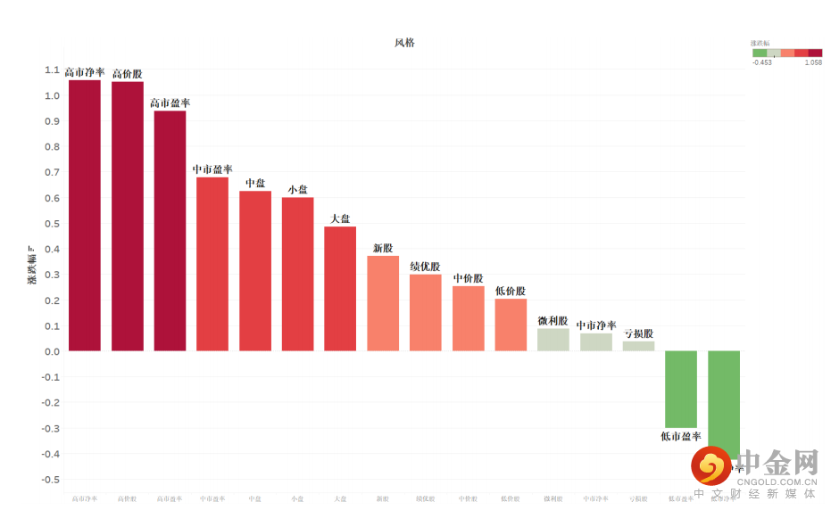 申万风格方面,以成长为主的高市净率、高价股涨幅超1%;高市盈率风格也表现优秀;而低市盈率、低市净率的价值股则小幅下跌。