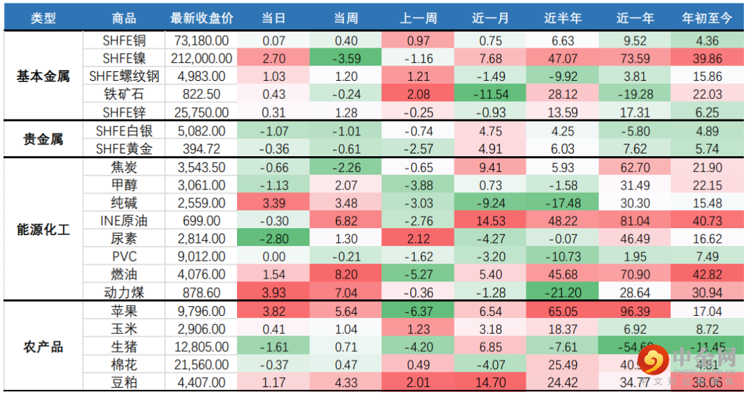 国内商品期市开盘多数下跌后直线拉升,收盘多数上涨;基本金属全线上涨,沪镍涨超2%,螺纹钢涨超1%,铁矿石小幅收涨;贵金属方面,白银、黄金均收跌;能源化工涨跌不一,黑色系多数上涨,动力煤涨近4%,不锈钢涨超2%;原油价格仍然维持在高位运行,市场主要矛盾点从前期的需求弱势担忧,迅速转移至供给风险可能引发的供应紧缩,叠加近期俄乌局势也在引发俄罗斯供应的风险,并且该风险会持续,短期油价将继续保持高位;而焦炭、甲醇、尿素下跌;农产品方面,棕榈油、苹果涨近4%,红枣跌近2%;据马来西亚棕榈油协会(MPOA)发布的数据显示,2022 年 3 月 1—20 日马来西亚毛棕榈油产量预估环比增加 8.08%,其中马来半岛增加 13.35%,沙巴减少 1.99%,沙捞越增加 1.04%,马来东部减少 1.26%。产量增幅小于 SPPOMA 的预估,也给市场带来支撑。国内方面,疫情发展继续不利于油脂消费。货物运输不畅,进口到港不足,库存维持偏低走势。油脂市场供给偏少矛盾没解决,需求存在不确定性。