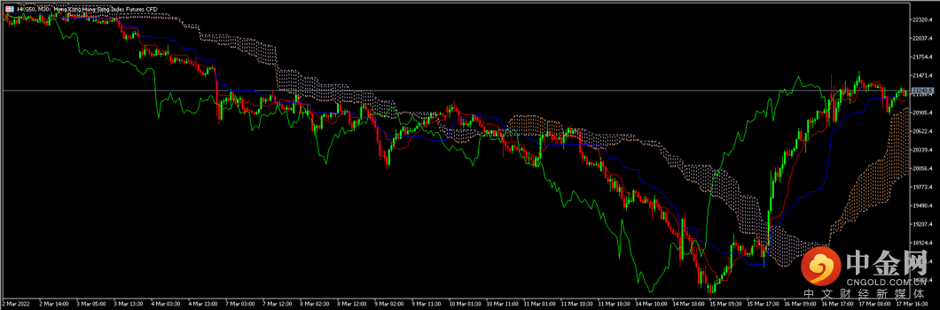 恒指在发稿时出现回落迹象,目前K线在21,250点附近迂回,是市场多空情绪针对3月初形成的支撑位/阻力位进行博弈的体现。