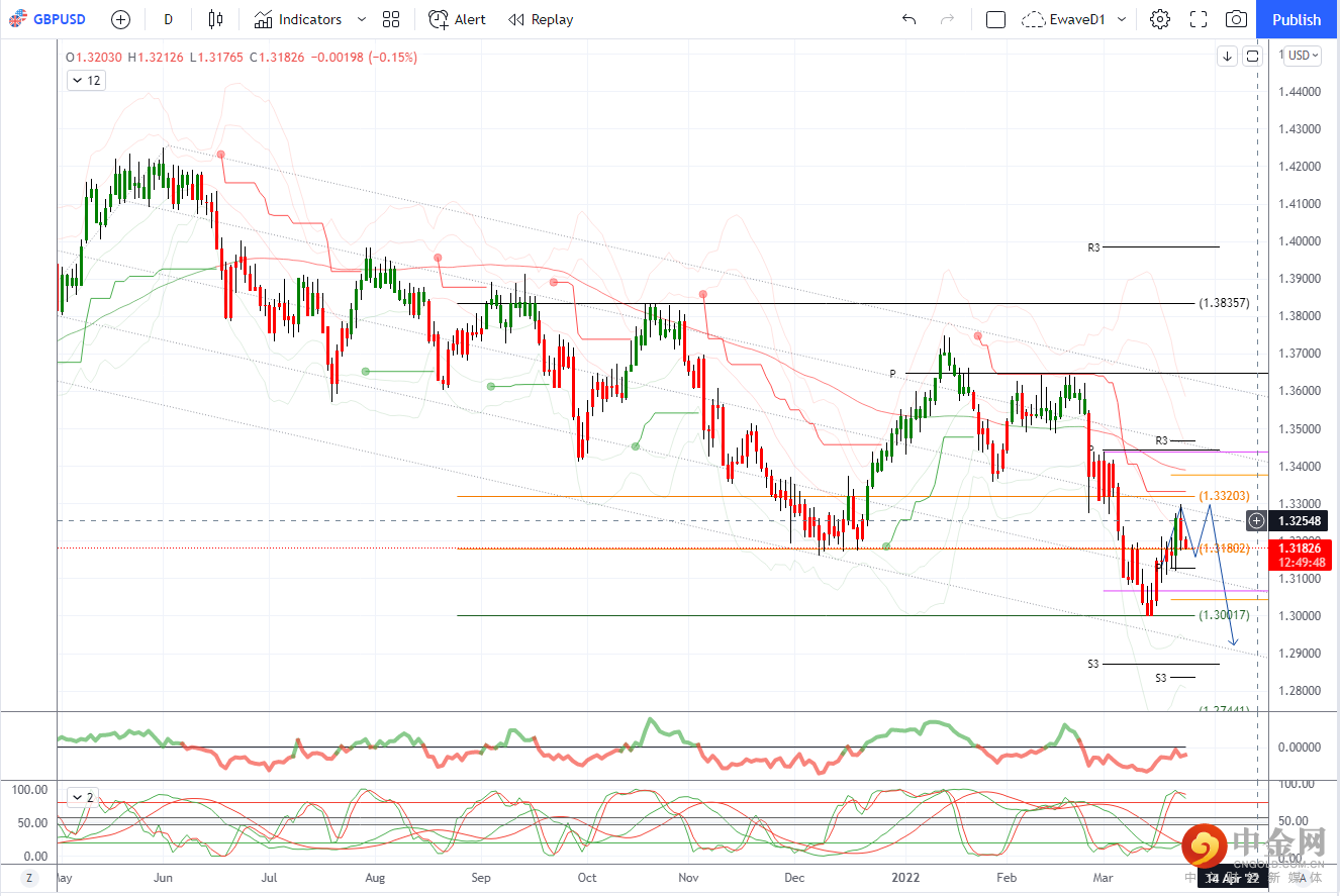 1.3322,2 月至 3 月下跌 50% 和 1.3000 3 月和 2022 年低位参数