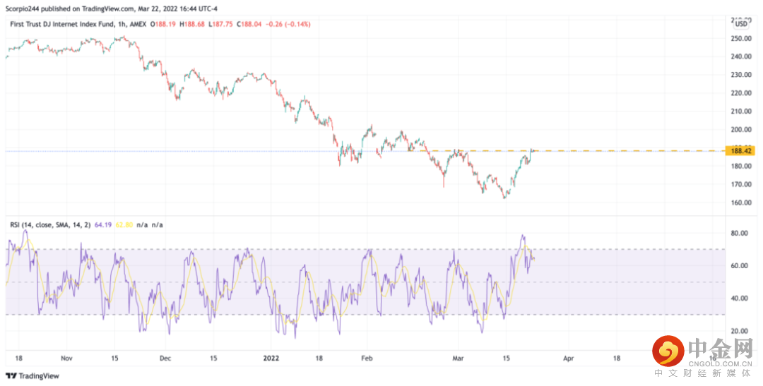 此外,道琼斯网络指数基金今天上升至188.40美元的阻力线处并停滞。